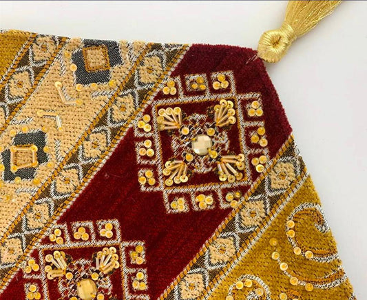 Hand Sequin - Maroon Table Runner